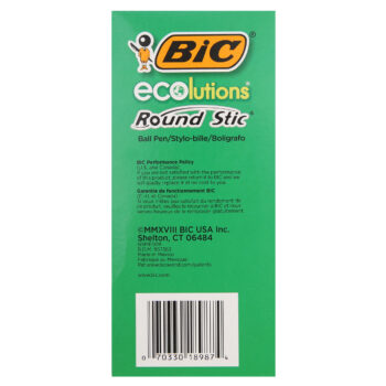 BIC Ecolutions Round Stic Ball Pen, Medium Point (1.0mm), Blue, 50 Count