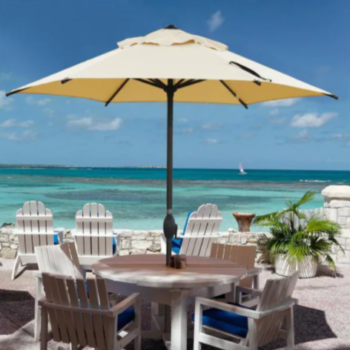 7-1/2 ft. Round Outdoor Market with Push Button Tilt and Crank Lift Patio Umbrella in Beige
