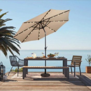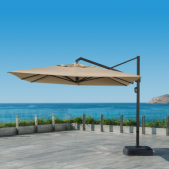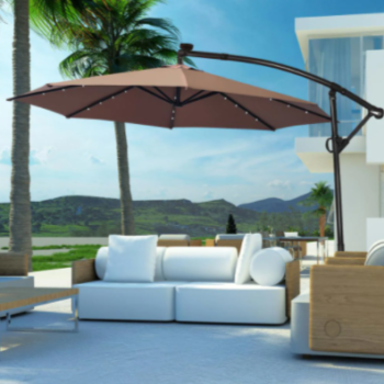 10 ft. Aluminum Offset Cantilever Solar Tilt Patio Umbrella LED Lights 360-Degrees Rotation Tan