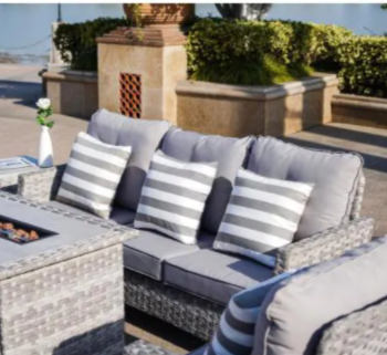 Torch Grey 5-Pieces Wicker Patio Conversation set with Fire pit and Grey Cushions